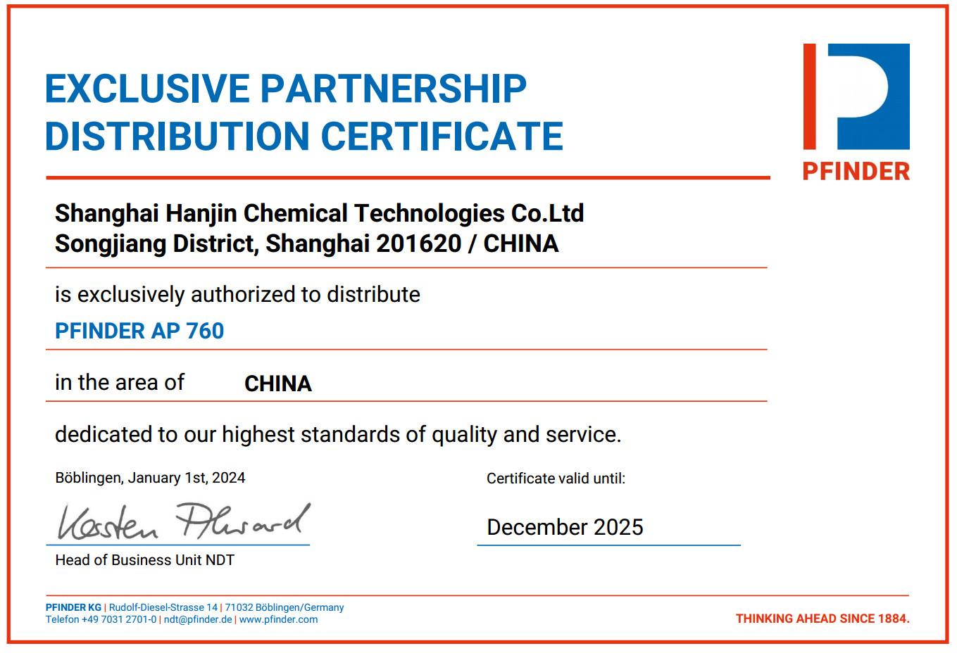 3月初,德国Pfinder公司的Mr. Kersten Alward将来我司进行培训并商谈商务事宜 阅读详细»